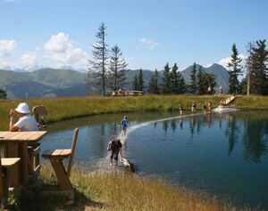 Barfuß gehen Kinder und Eltern rund um den Gipfelsee am Gasteiner Fulseck und erleben die Natur hautnah. Auf dem Barfußweg lernen Familien unterschiedliche Untergründe , wie Rindenmulch, Sägespäne, Sand und Kies mit ihren Fußsohlen kennen. Zwischendurch kann man durch einen direkten Seezugang auch im Wasser plantschen. Rund um den See gibt es zahlreiche Sitzmöglichkeiten und tolle Ausblicke. Für das leibliche Wohl wird auf den Almhütten gesorgt. Zu erreichen ist der Barfußpfad von der Gipfelstation der Fulseck Bergbahn über den Kristallweg.