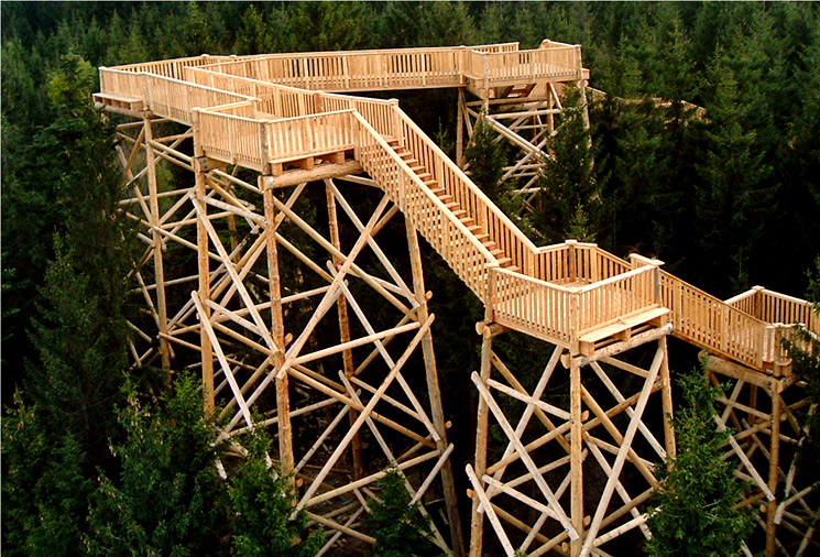 Der 2,5 km lange Rundweg hält neben Wandern in den Baumwipfel noch viele andere Überraschungen parat. Einige Erlebnisstationen bieten Kindern einige Stunden Beschäftigung. Ihnen wird auf spielerische Weise Wissenswertes über den Wald näher gebracht. So z.B. ein Labyrinth oder einen 5000 m² großer Spielplatz mit Riesenrutsche, Trampolin, Hängematte und Riesenschaukel. Seit diesem Jahr gibt es auch einen Niederseilgarten in dem die kleinen Besucher in „fallsicherer“ Höhe ihr Gleichgewicht und ihre Geschicklichkeit testen können. Für Speis und Trank sorgt der Waldgasthof Oachkatzl hoch oben in den Wipfeln der Bäume.