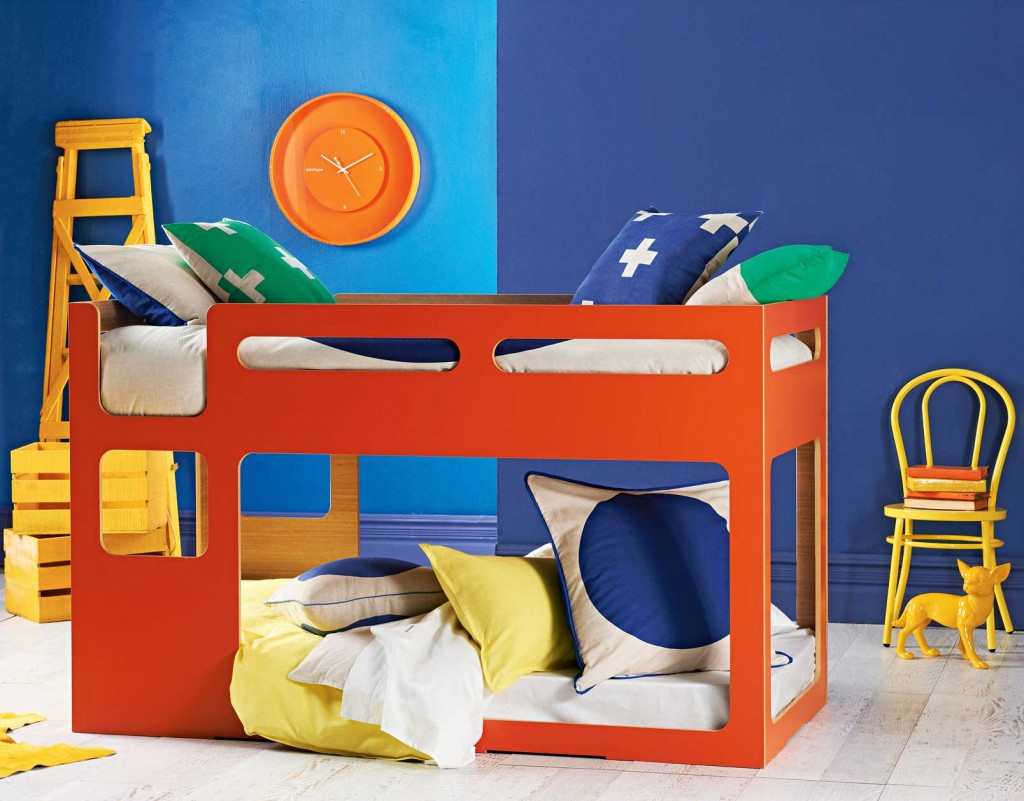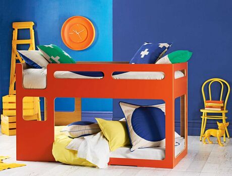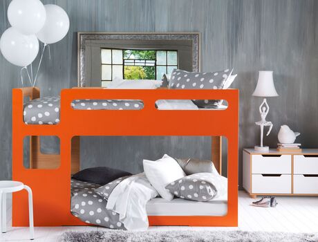 Dieses außergewöhnliche Stockbett von Domayne kommt in einem schlichtem Design. Der obere Stock ist von beiden Seiten begehbar und lässt durch seine großen Fenster dem unteren Bereich viel Möglichkeit für Licht. Dieses Bett wird in 4 verschiedenen Farben angeboten.