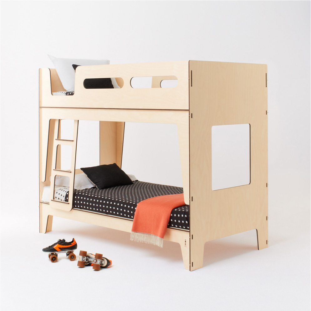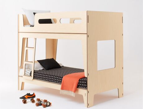 Das coole an diesem Modell von Plyroom ist, dass die Möglichkeit besteht, je nachdem wie das Kinderzimmer geschnitten ist, die Leiter an beiden Seiten anzubringen. Durch das Fenster im unterem Stock kommt mehr Licht in den unteren Bereich. Durch ein intelligentes Design braucht man nur einen Hammer um das Stockbett zusammenbauen zu können. Das Bett kann in unterschiedlichen Farben bestellt werden.