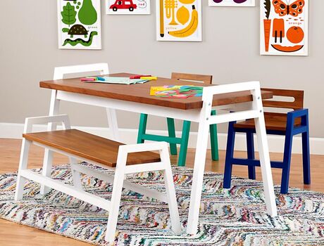 Diese Tischgruppe von Bloom ist speziell für die ganz Kleinen unter uns. Der Tisch und die Sessel stechen durch ihr ergonomisches Design hervor. Beide Sessel lassen sich perfekt in den Tisch einschieben und sind dadurch sehr platzsparend. Zusätzlich sind zwei versenkbare Ablageflächen im Tisch integriert.
