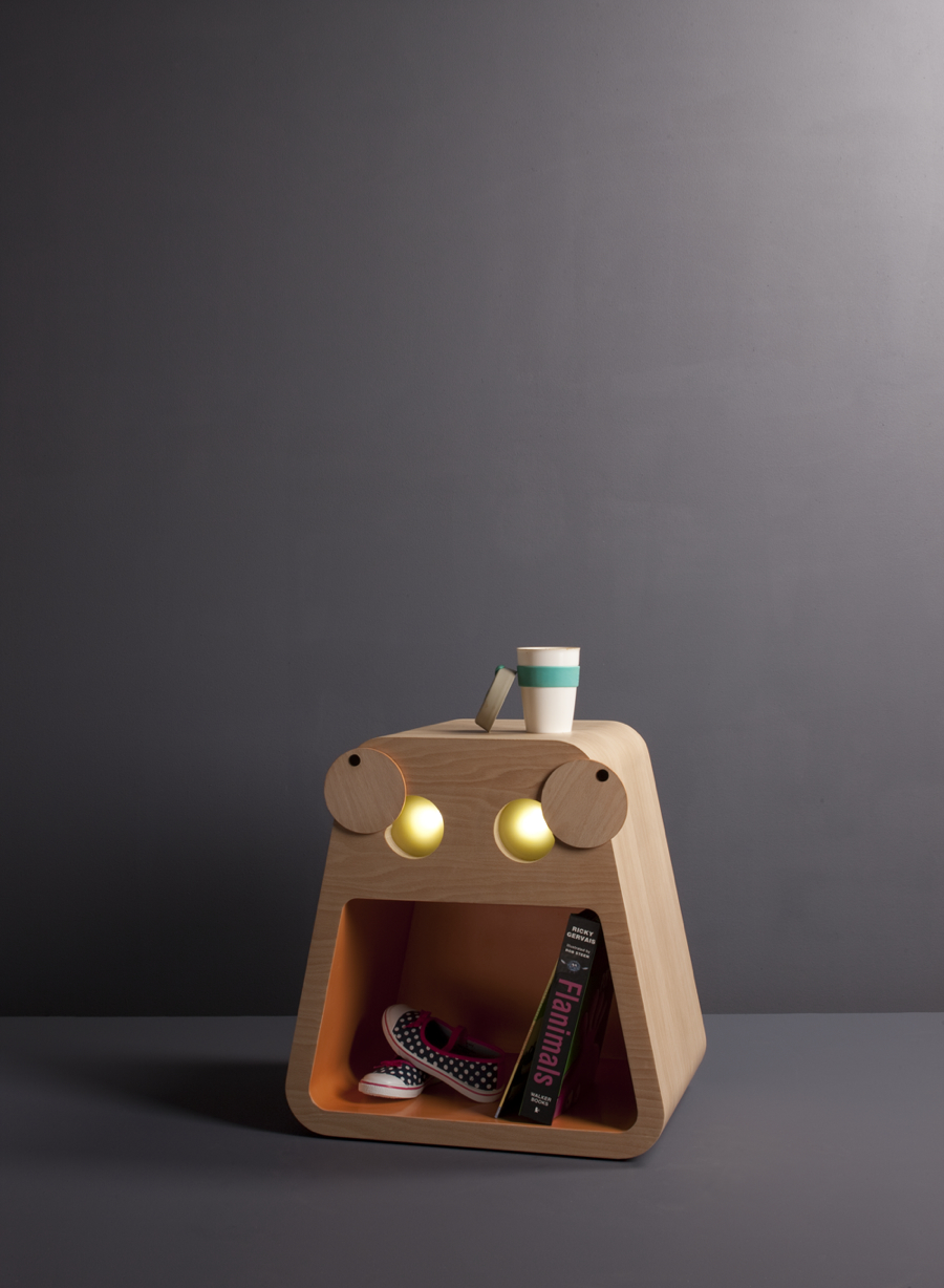 Elena Nunziata ist Möbeldesignerin und Chefin hinter dem Projekt „Little Helper“. Sie entwirft großteils Kindermöbel. Melvin ist ein Nachttisch und ist ein Möbelstück des Projekts. Er birgt etwas ganz besonderes. Wenn nämlich die Augen des Nachttisches weggedrückt werden, dann kommt darunter eine Nachttischlampe zum Vorschein.