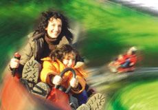 Auf der Allwetterrodelbahn Hexenexpress düst man mit 40 km/h den Schöckl hinunter. Der Schöckl ist in nur ca. 30 Minuten von Graz aus zu erreichen. Von der Talstation bringt eine Seilbahn die Besucher in Panoramagondeln auf 1445 Meter Seehöhe zur Bergstation. Hier wartet schon der Hexenexpress auf seine mutigen Gäste. Die etwa 1000 Meter lange Rodelbahn führt zur Halterhütte, dabei sind 7 Kurven und 2 Jumps zu bewältigen. Als Höchstgeschwindigkeit können 40 km/h erreicht werden, aber keine Angst, die Bremsen sind leicht mit Hebel zu bedienen und jeder Fahrer kann sein Tempo individuell steuern. Mamis und Papis können die bequemen Rodeln natürlich gemeinsam mit einem Kind fahren. Am Ziel angekommen, wird die Rodel mitsamt Fahrer von einer Aufstiegshilfe wieder zur Bergstation hinaufgezogen und der Spaß kann von vorne beginnen!