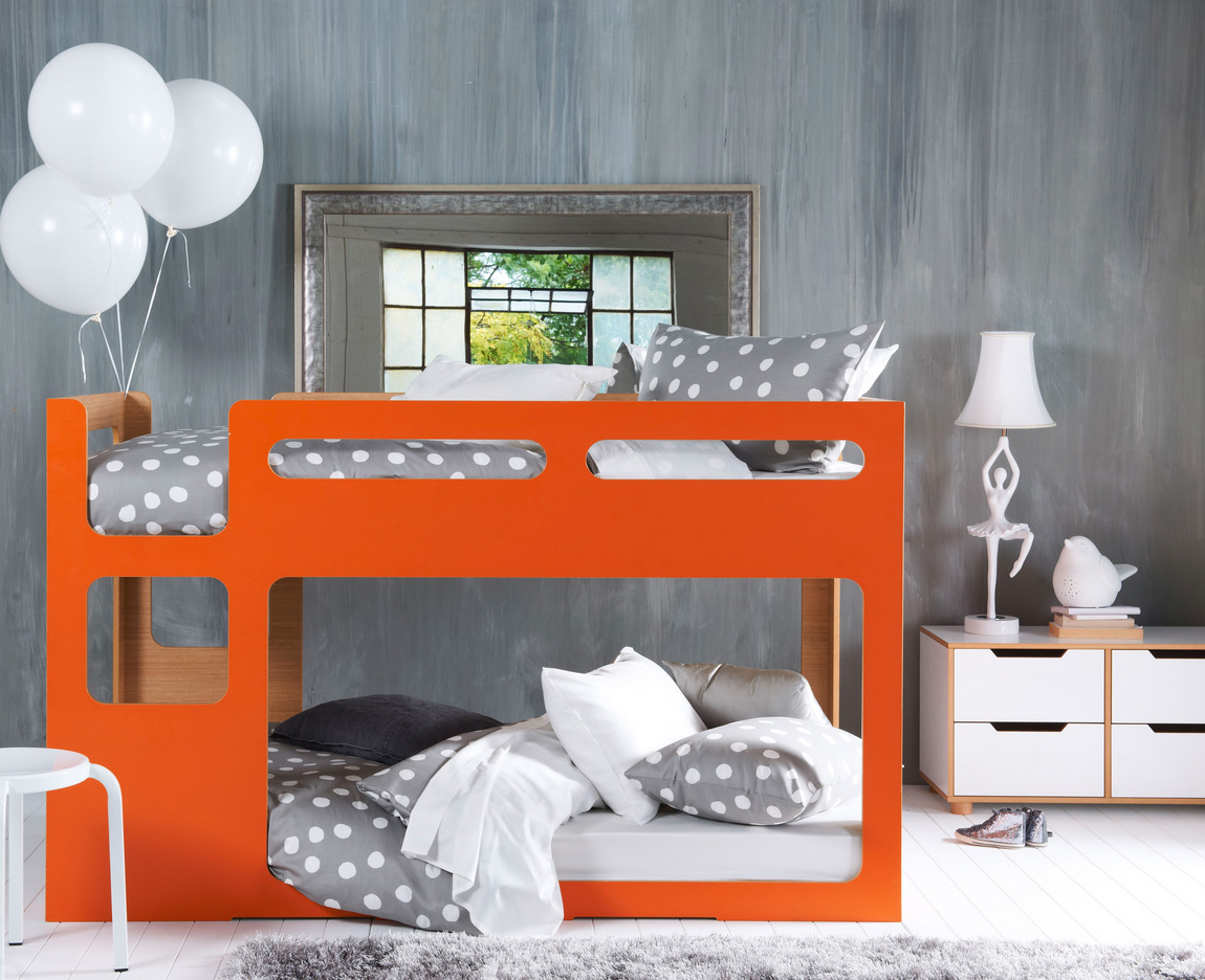 Dieses außergewöhnliche Stockbett von Domayne kommt in einem schlichtem Design. Der obere Stock ist von beiden Seiten begehbar und lässt durch seine großen Fenster dem unteren Bereich viel Möglichkeit für Licht. Dieses Bett wird in 4 verschiedenen Farben angeboten.
