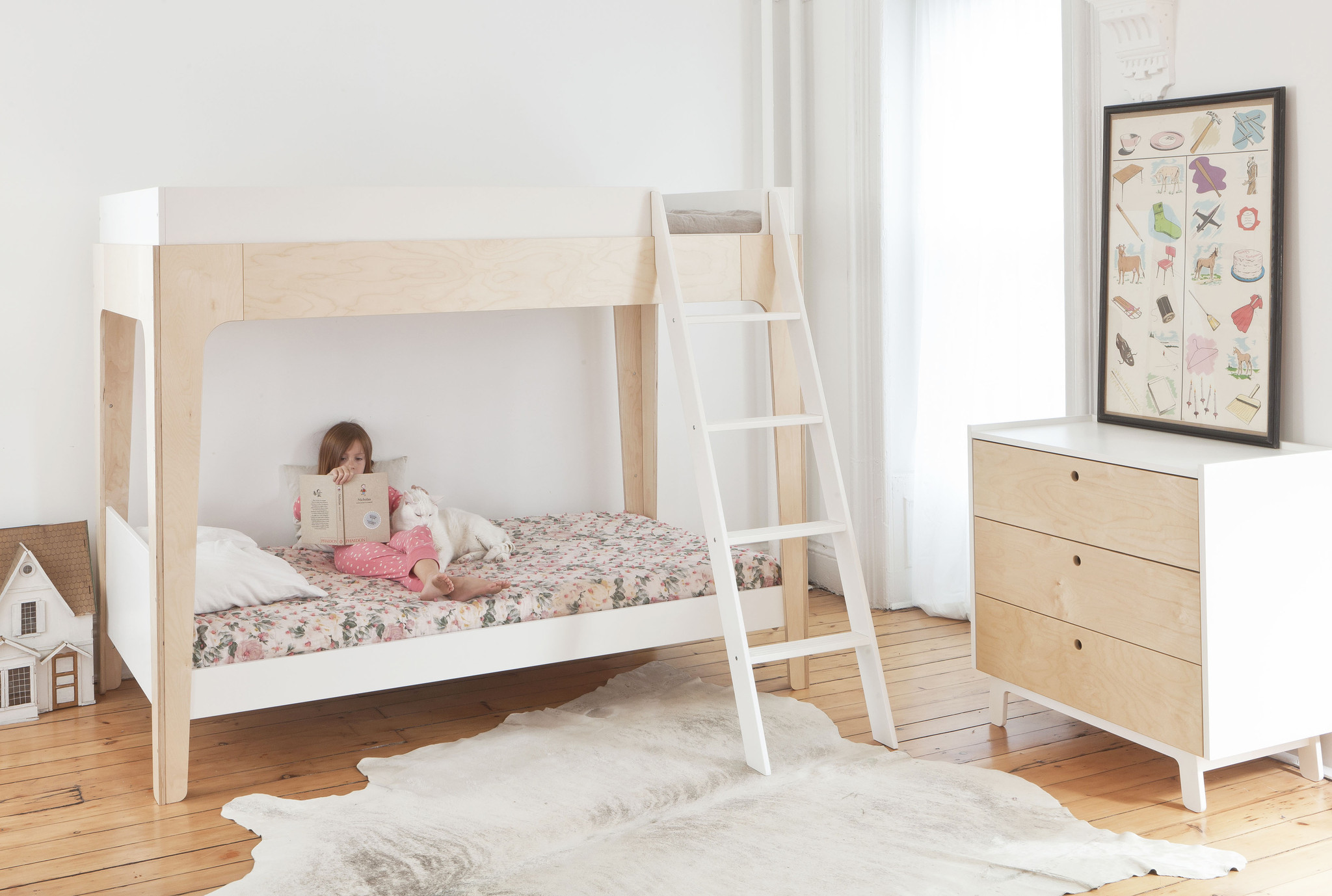 Dieses Stockbett von Oeuf gibt seinem Besitzer die Möglichkeit den unteren Teil des Bettes individuell zu gestalten. Er lässt sich ganz leicht lösen, so dass ein Hochbett und ein Einzelbett daraus werden kann.