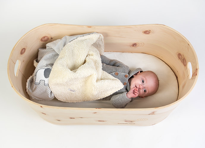 Es waren sehr persönliche Erfahrungen, die maßgeblich an der Entwicklung von Benni’s Nest beteiligt waren. Der Rat einer Großmutter spielte auch eine Rolle, aber das ist eine andere Geschichte. Benni’s Nest ist ein Babybett aus reinem Zirbenholz, das Neugeborenen bis zum sechsten Lebensmonat Platz und vor allem Geborgenheit bietet. Der Geruch der Zirbe soll sich positiv auf das vegetative Nervensystem auswirken und so zu einem besseren Schlaf beitragen. Benni’s Nest ist in etwa so groß wie der Korb eines Stubenwagens, Matratze und Überzug sind im Lieferumfang enthalten.